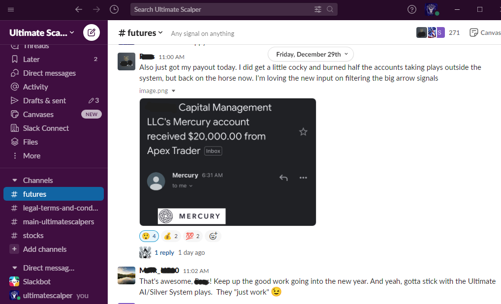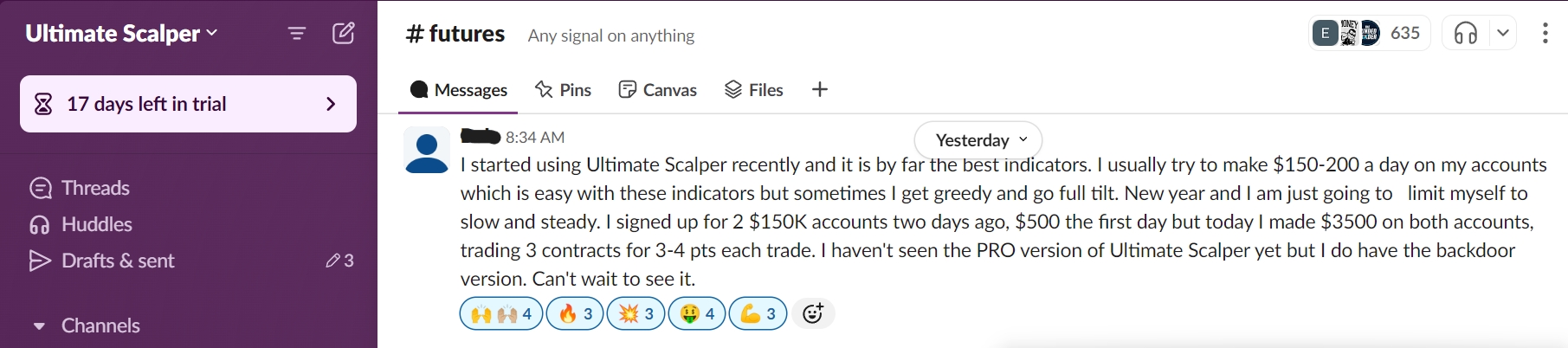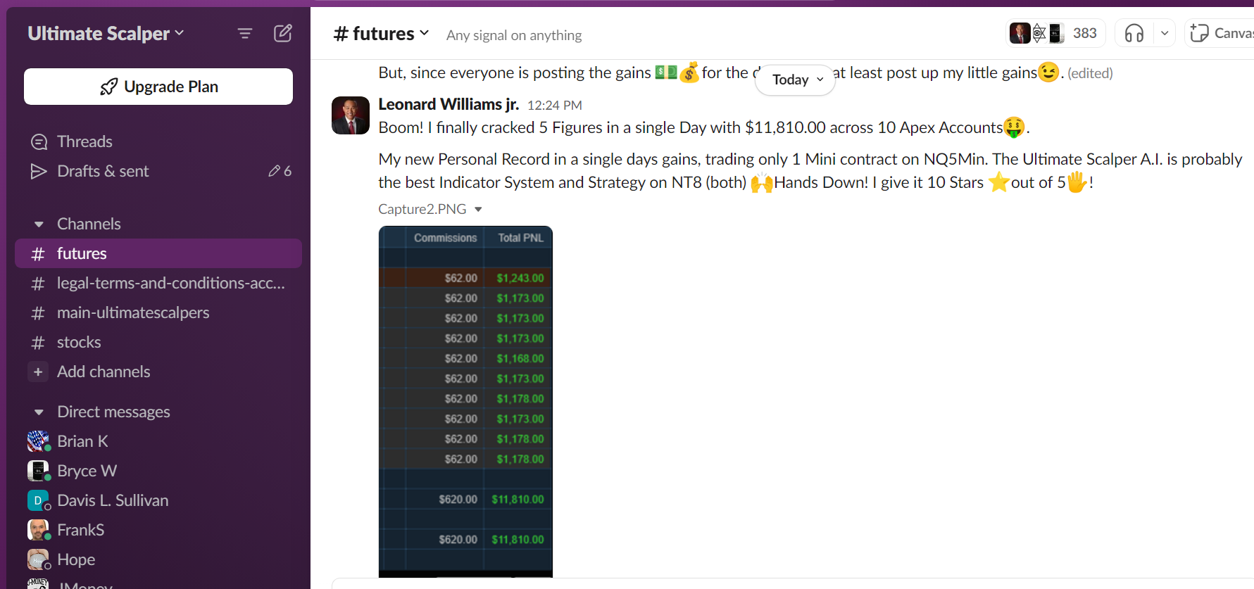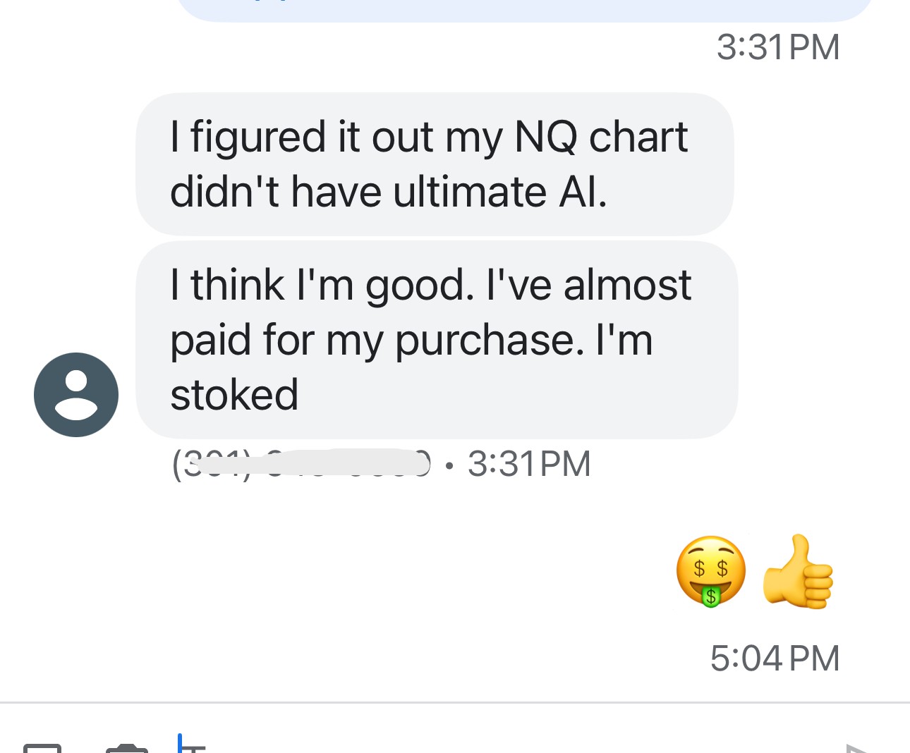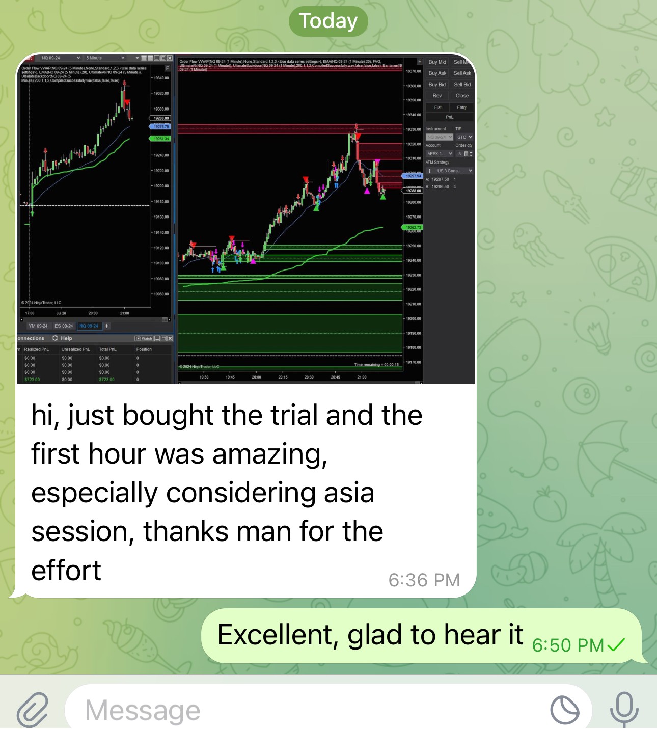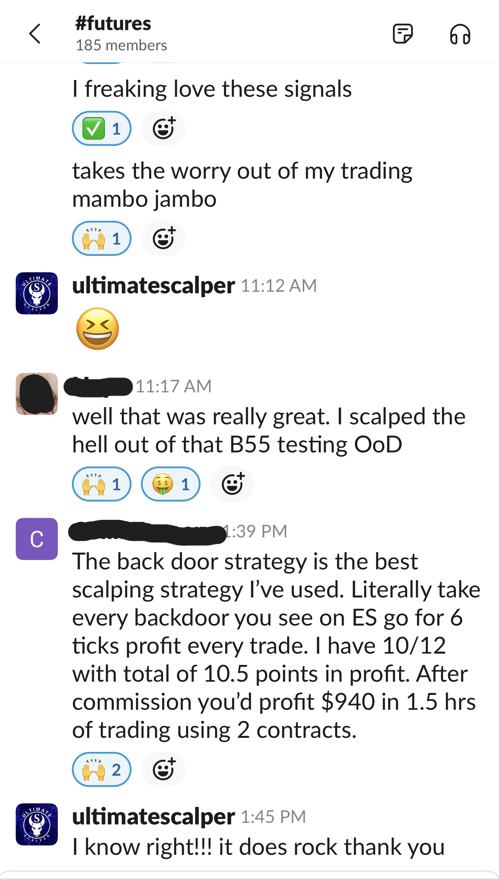 ANY ADVISORY OR SIGNAL GENERATED BY “The Ultimate Scalper” Systems, SIGNALS, INDICATORS and/or methods IS PROVIDED FOR EDUCATIONAL PURPOSED ONLY. ANY TRADES PLACED UPON RELIANCE ON WWW.UltimateScalper.COM SYSTEMS, SIGNALS, INDICATORS OR METHODS ARE TAKEN AT YOUR OWN RISK FOR YOUR OWN ACCOUNT. PAST PERFORMANCE IS NO GUARANTEE OF FUTURE RESULTS. WHILE THERE IS GREAT POTENTIAL FOR REWARD TRADING COMMODITY FUTURES, THERE IS ALSO SUBSTANTIAL RISK OF LOSS IN ALL TRADING. YOU MUST DECIDE YOUR OWN SUITABILITY TO TRADE OR NOT. FUTURES RESULTS CAN NEVER BE GUARANTEED. THIS IS NOT AN OFFER TO BUY OR SELL FUTURES OR COMMODITY INTERESTS.